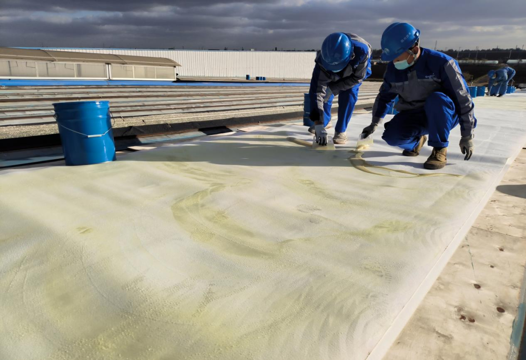 Avant la construction, les artisans ont effectué des préparations minutieuses de meulage et de dérouillage sur la surface du substrat de la tôle d'acier d'origine.Une fois les matériaux entrés sur le site, ils ont été stockés conformément aux normes.Une fois que le néoprène sur la surface de support de la membrane est uniformément séché dans la mesure où il peut être collé, il est ensuite appliqué.