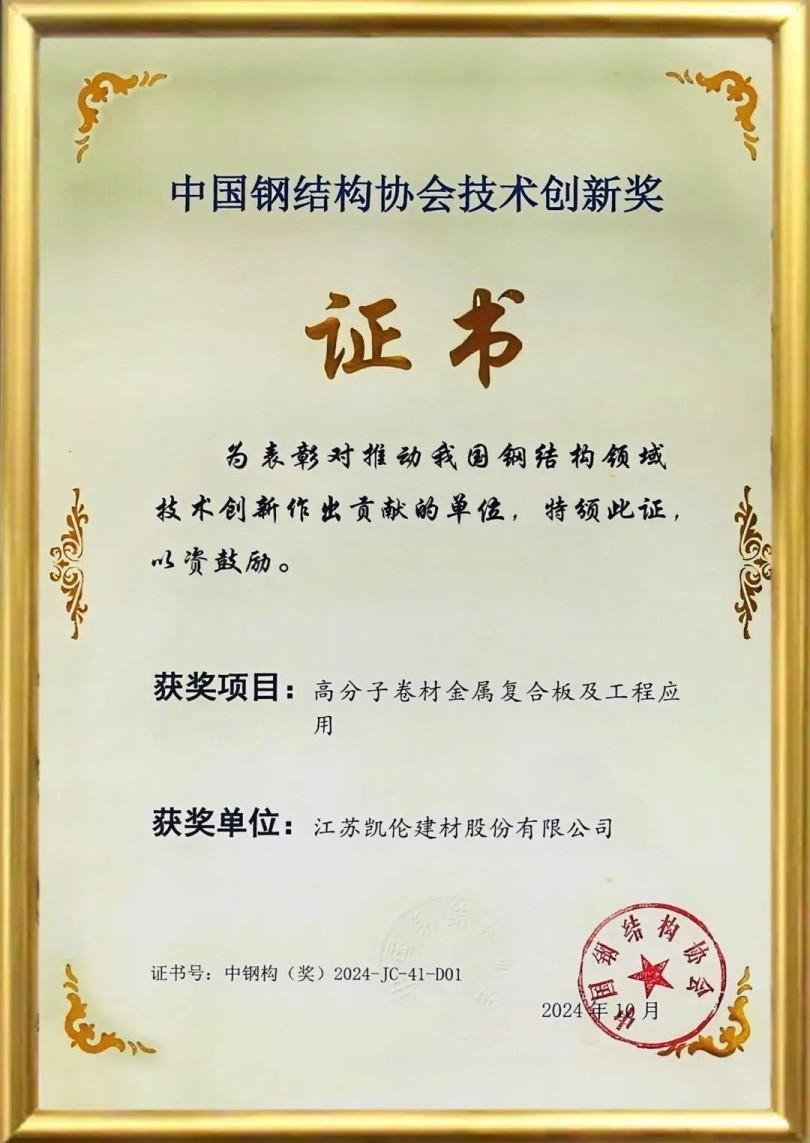 Le 28 mars 2025, la 11e conférence nationale de l'industrie du système des enceintes métalliques a eu lieu à Shaoxing, Zhejiang. Le 'Projet de panneau d'ingénierie ' Polymer Membrane Metal 'Projet de Canlon Co. , Ltd. a remporté le prix 2024 ' Technology Innovation Award 'de la China Steel Structure Association lors de cette conférence . Il représente la reconnaissance faisant autorité de l'innovation du panneau intégré TMP Canlon par la China Steel Structure Association.