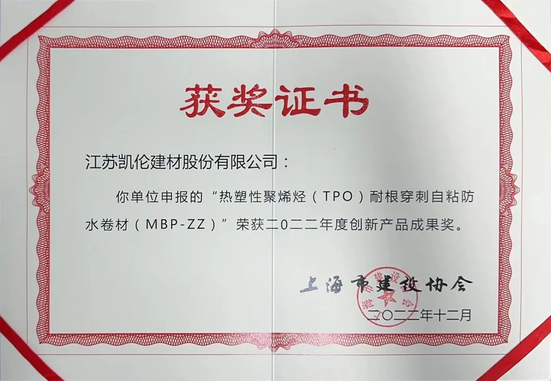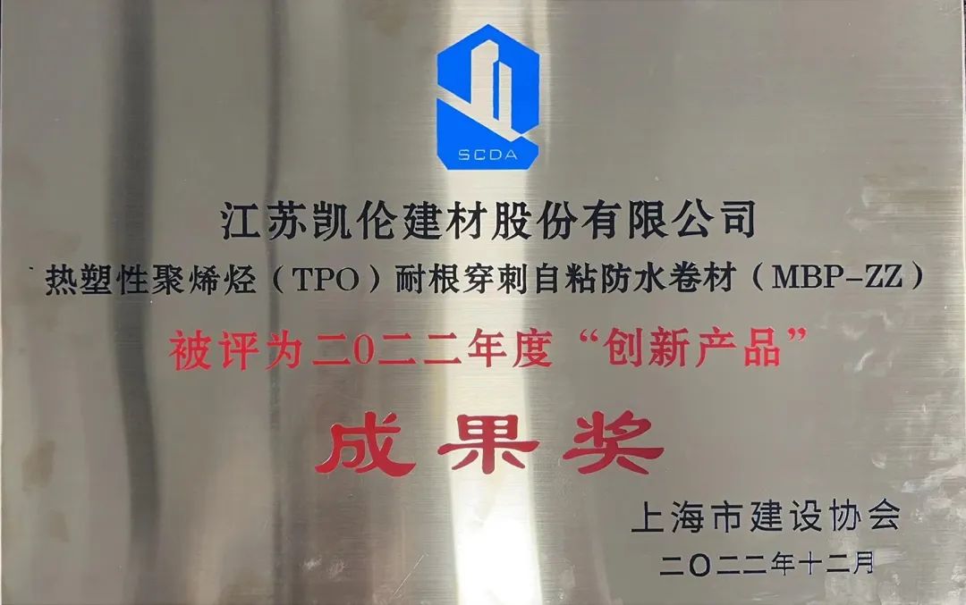 Le 26 avril, l'Association de construction de Shanghai a tenu la huitième réunion du quatrième conseil.Lors de la réunion, la Shanghai Construction Association a annoncé les gagnants du 2022 'Projets de démonstration, produits innovants et technologies avancées' activité de sélection et remise des prix aux gagnants. CanonAutocollant en polyoléfine thermoplastique (TPO) résistant à la perforation, imperméable à l'eaumembrane d'étanchéité (MBP-ZZ) a reçu le prix d'excellence « Produit innovant » 2022.