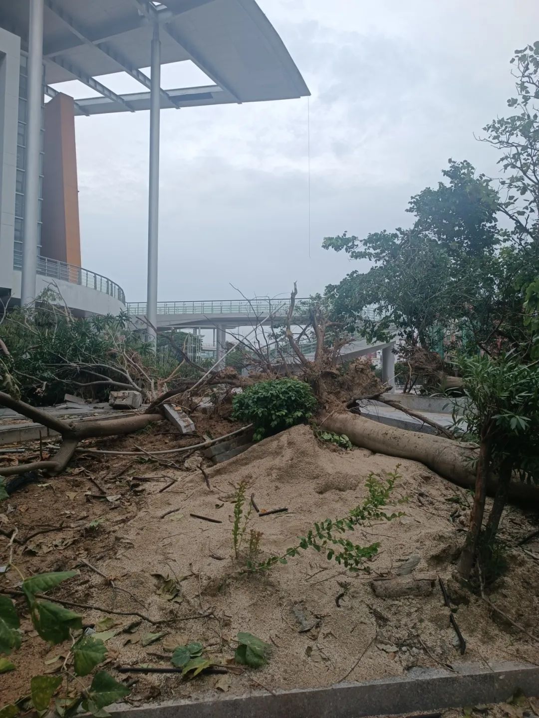 Le centre d'exposition d'art Shishi Clothing City est également un bâtiment public emblématique local.Il n'y a pas si longtemps, le projet utilisait le Panneau métallique avec revêtement TPO Canlon TMP système aux étages supérieurs et inférieurs du toit frdévelopper système.Parmi eux, le plus bas TMP Le système utilise le processus d'installation inversé sous les pannes.Après le passage du typhon, Canonc'est gestionnaire de compte Je suis allé sans arrêt sur le projet achevé pour évaluer la situation.Dès qu'ils sont sortis de la voiture, ils ont vu une scène effrayante : une grande zone d'arbres autour du bâtiment avait été abattue par le vent fort et déracinée.Cela ne peut s'empêcher de faire transpirer les gens à cause du projet de toiture qui est exposé à l'extérieur et résiste aux vents les plus forts.