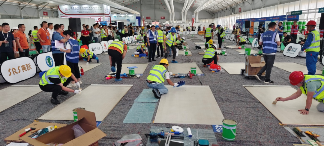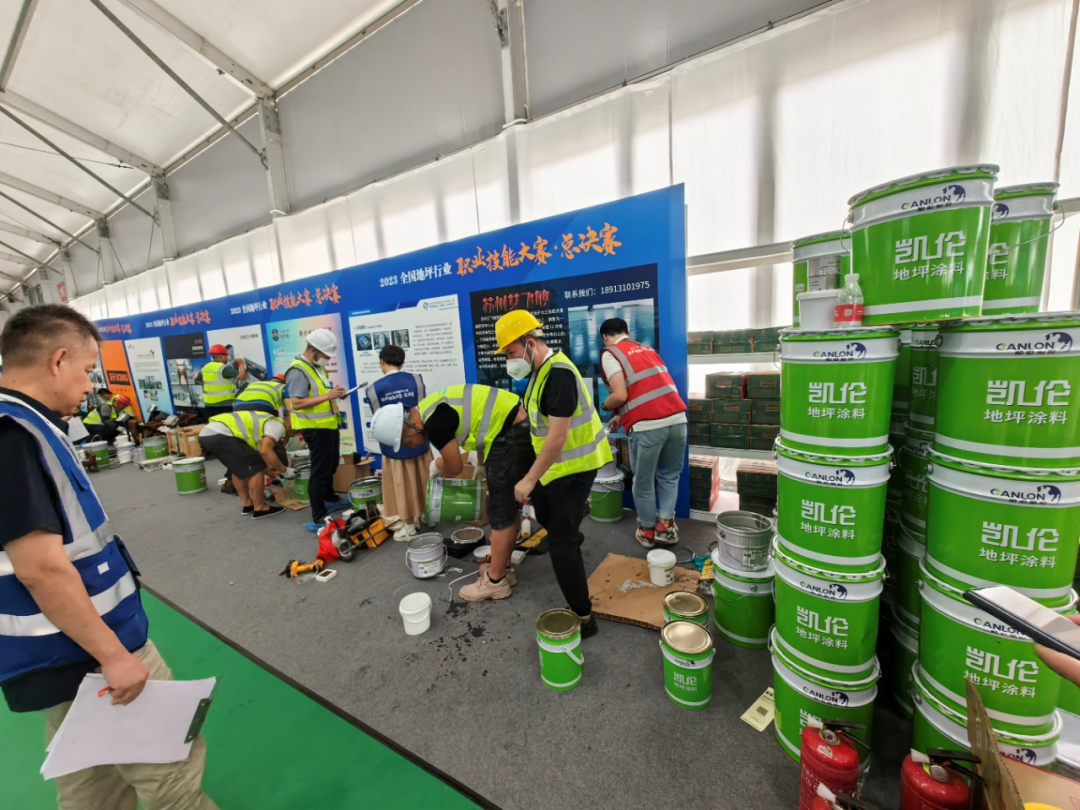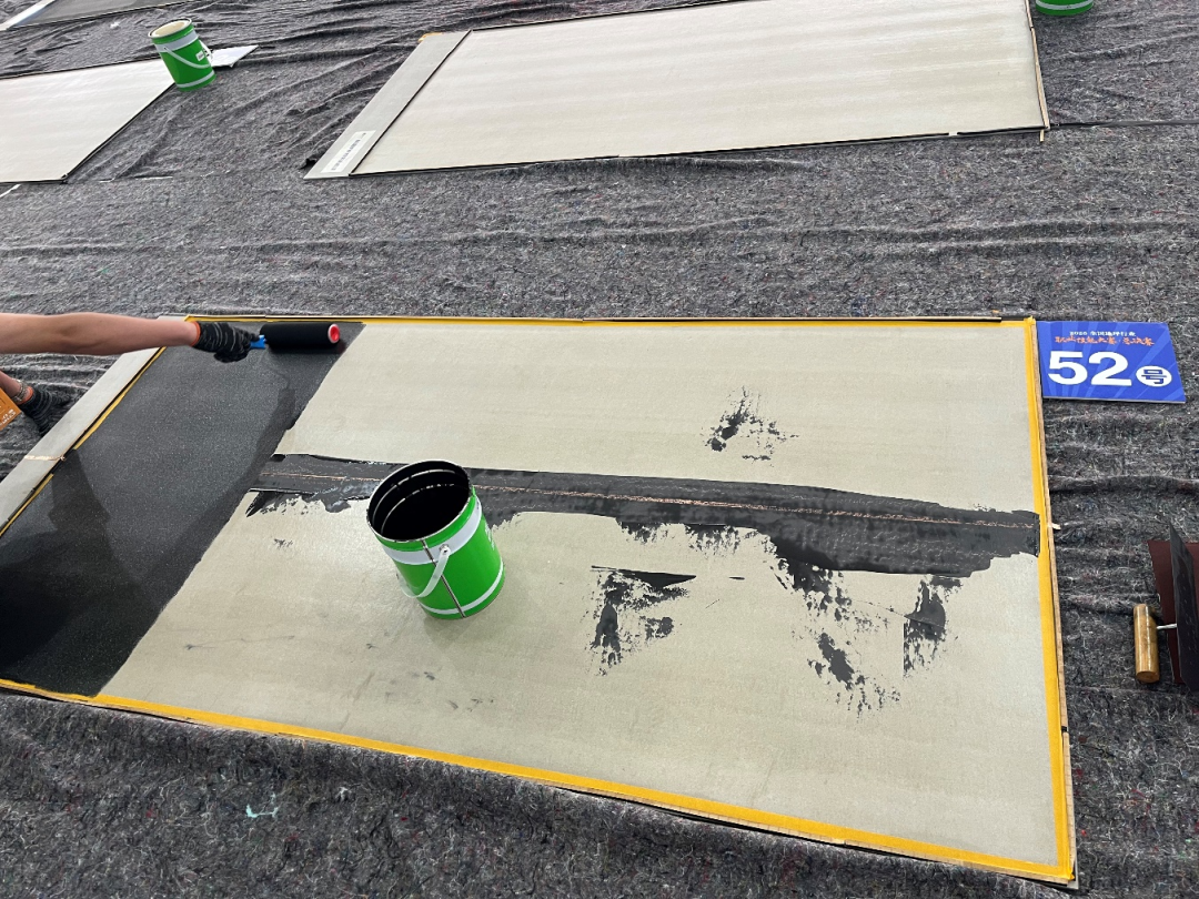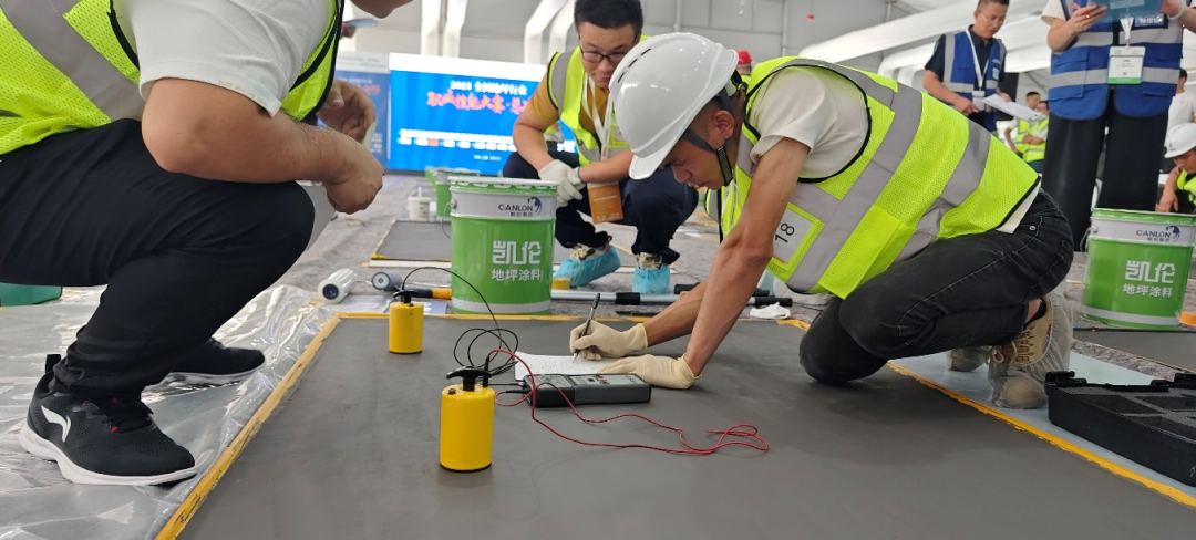 Le concours est divisé en mélange de matériaux, broyage substrat surface, pose d'une feuille de cuivre, d'un apprêt conducteur époxy, d'un revêtement époxy antistatique autonivelant à la truelle et du test final de résistance antistatique et de l'acceptation.L’ensemble du processus s’est déroulé dans l’ordre.Les concurrents ont montré leurs « compétences » et affiché leur très haut niveau technique dans chaque lien, attirant le public à s'arrêter et à regarder, et la popularité du site du concours montait en flèche.