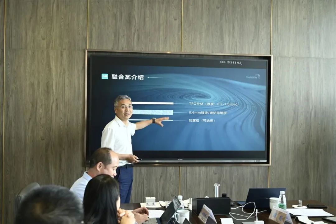Lors de la séance d'échange technique, le président Li Zhongren a présenté la structure de base, le schéma du système et divers indicateurs de performance de Canlon. Panneau métallique enduit de TPO (TMP Panneau) Aux experts, y compris les paramètres ignifuges et coupe-vent soulèvement résistance, a montré l'animation des étapes d'installation, l'a comparé à la couche imperméable ci-dessous, les avantages de Panneau métallique enduit de TPO dans le contrôle de qualité, le contrôle de sécurité et même la maintenance, et a proposé que l'anticorrosion physique soit un choix plus simple et plus fiable pour les toitures industrielles et commerciales actuelles.