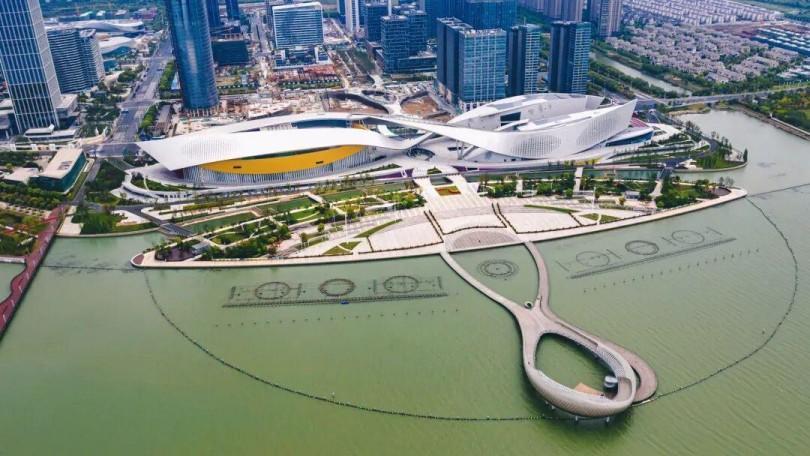 Le projet du centre culturel de la baie de Suzhou couvre environ 160 mu (environ 1,6 acres) et a une superficie totale de construction d'environ 215 000 mètres carrés. Avec un investissement total d'environ 3,09 milliards de yuans, le Grand Théâtre, situé au nord, comprend un opéra de 1 600 places et une salle de théâtre de 600 places. Avec deux fois la taille de l'Opéra de Sydney, c'est le troisième plus grand théâtre de Chine. Le centre culturel de la baie de Suzhou est également le premier complexe culturel urbain en Chine à intégrer un grand théâtre, un cinéma, un musée et des lieux d'exposition.