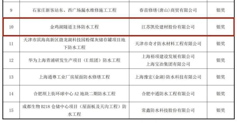 Parmi eux, Canlon a remporté un prix d'argent pour la technologie d'ingénierie avec son projet « Projet d'étanchéité principal du tunnel du lac Jinji » , démontrant une fois de plus l'excellente qualité du système d'étanchéité intégré.