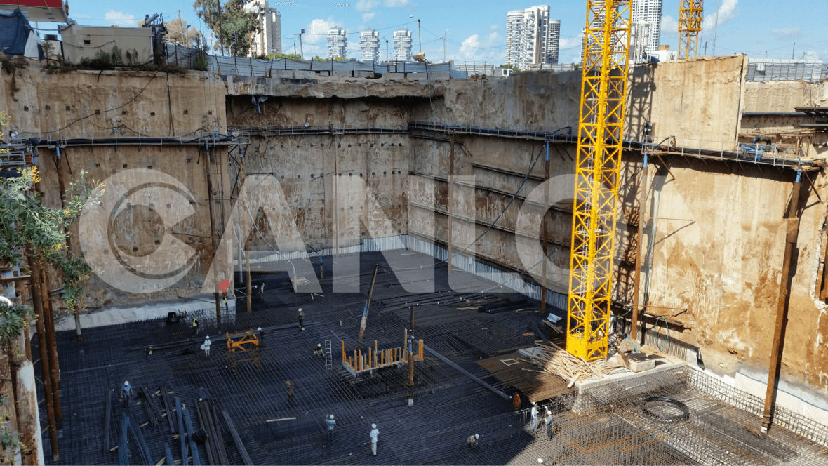 Ce projet de bâtiment commercial est situé sur la côte méditerranéenne et est conçu comme un sous-sol de cinq étages, à environ 24 mètres sous le niveau de la mer.L'ensemble du sol du projet utilise la membrane d'étanchéité pré-appliquée Canlon MBP-P, avec une superficie totale de construction de 4 000 mètres carrés.